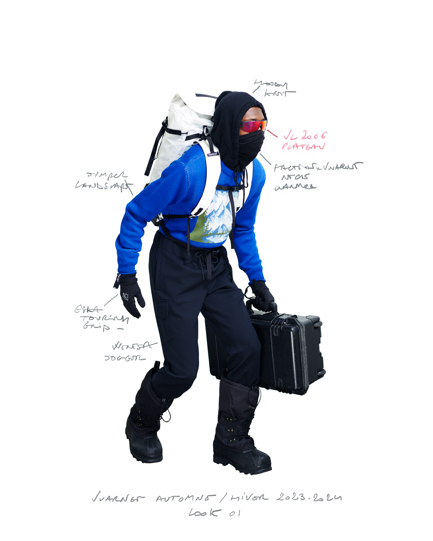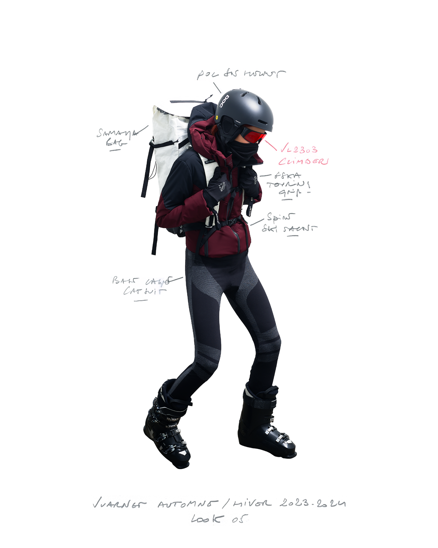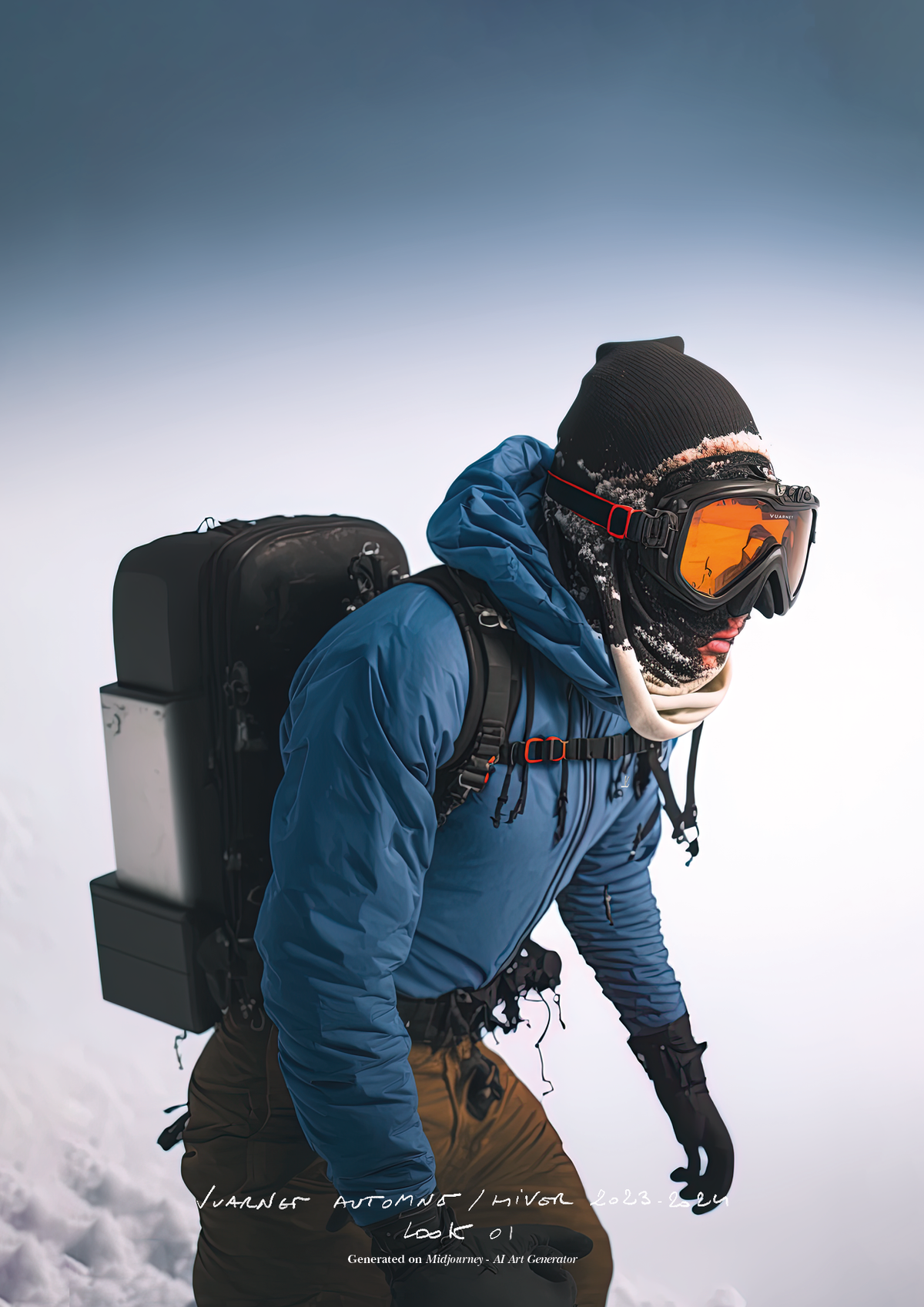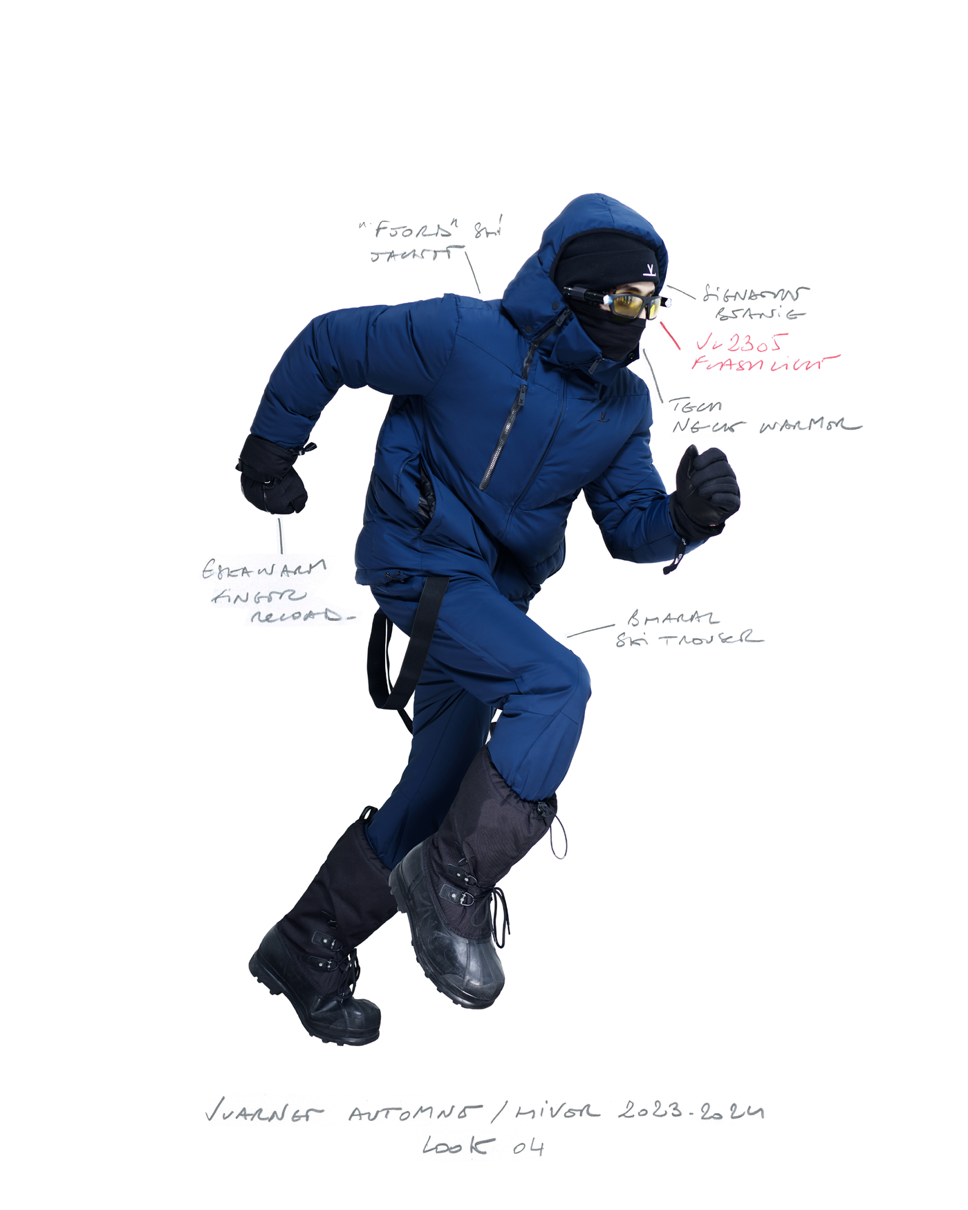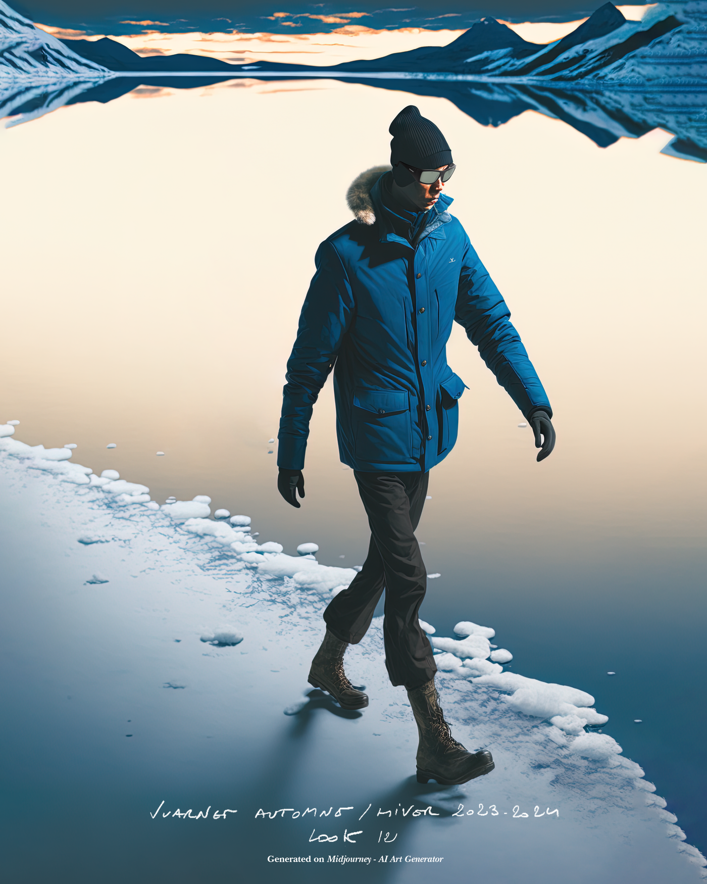 "Pour la saison Automne Hiver 2023, j'ai voulu rendre hommage à ce que représentait Jean Vuarnet à travers une dualité, en mélangeant des silhouettes et des vêtements techniques, avec des tricots et des vêtements alpins artisanaux et fabriqués en France", explique Boramy Viguier. Le lookbook lui-même illustre également une certaine dualité, avec deux images contrastées par look : une photo analogique centrée sur le vêtement, sans environnement ni fantaisie, qui fait face à une interprétation générée par un IA de la même image dans un environnement "naturel".