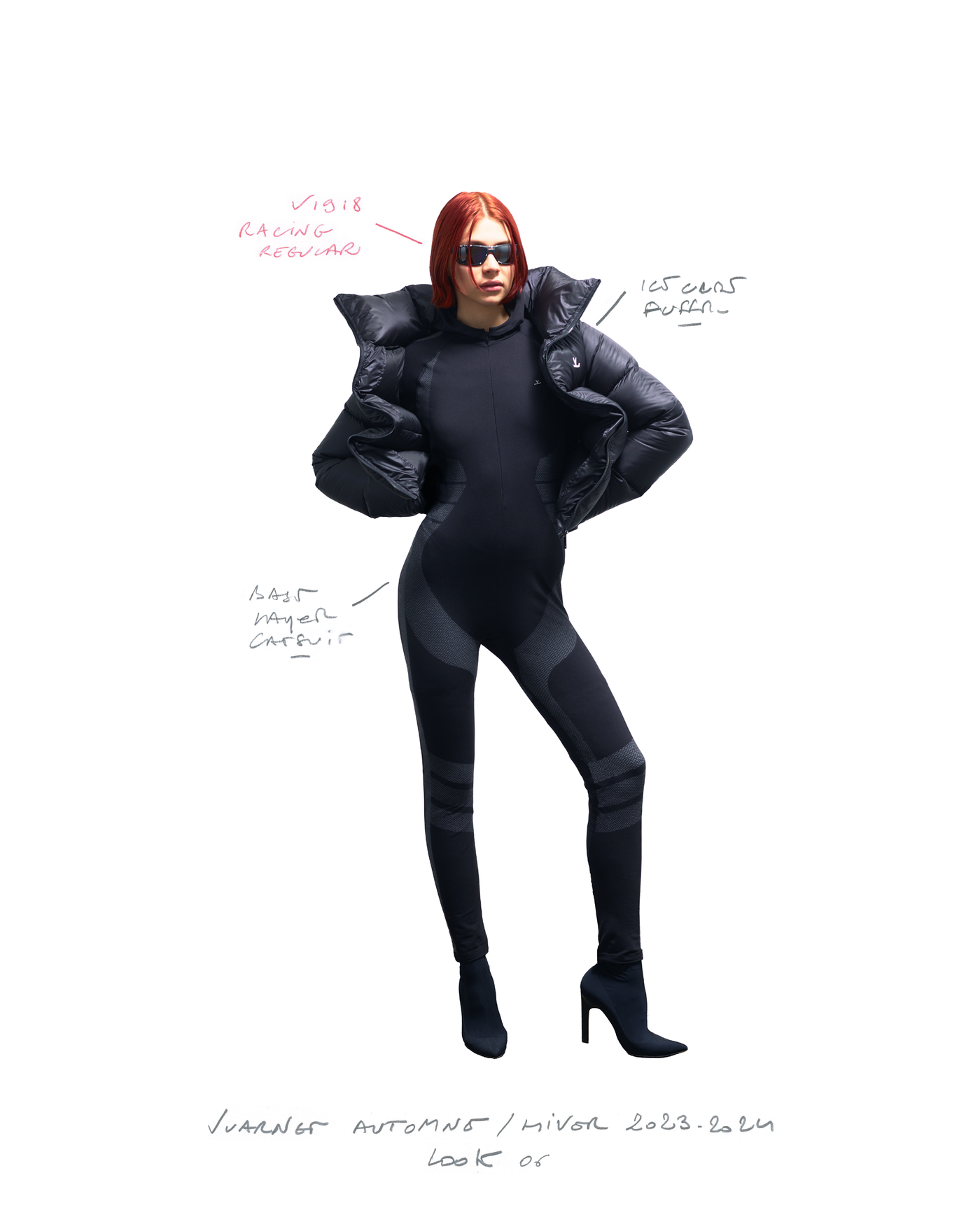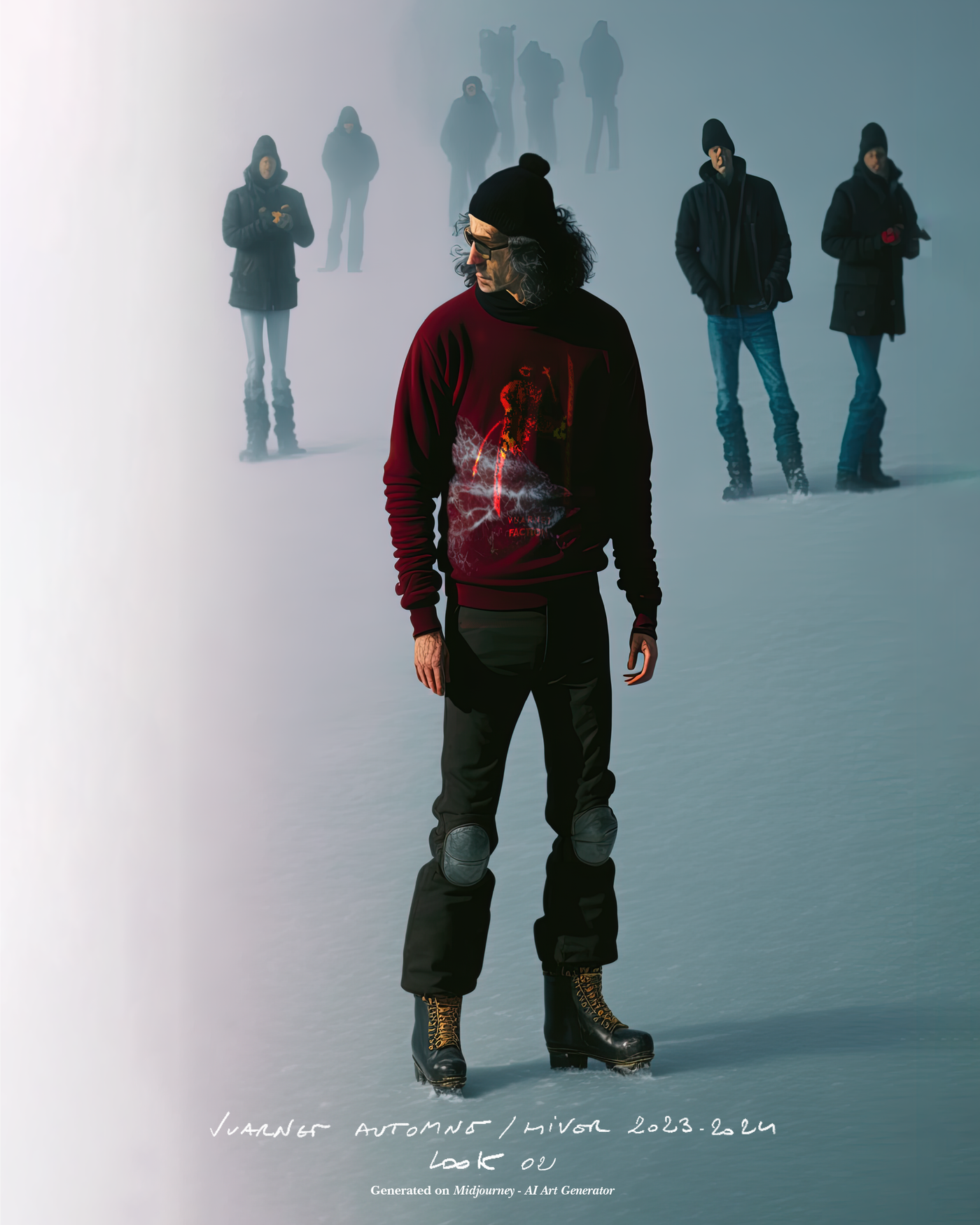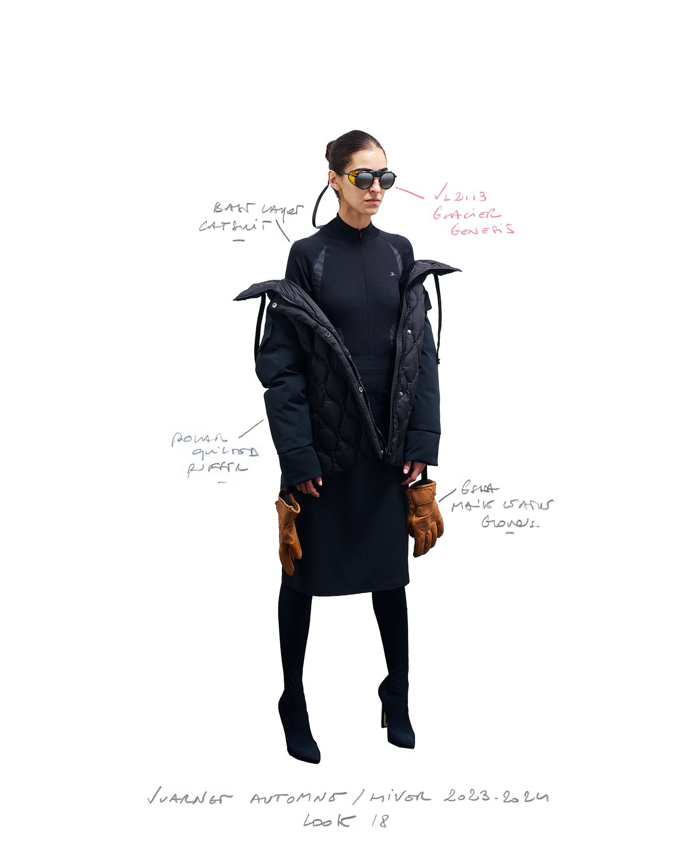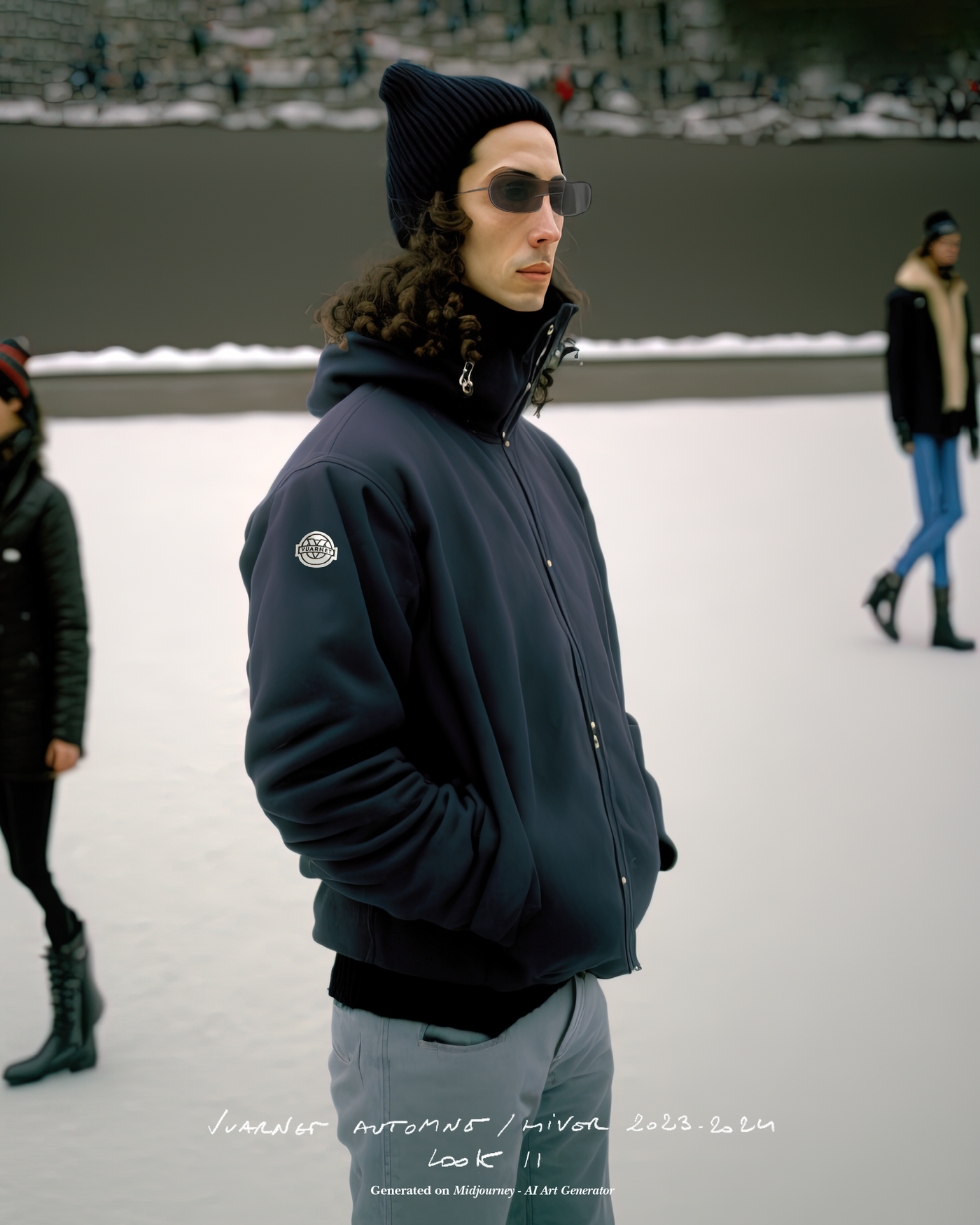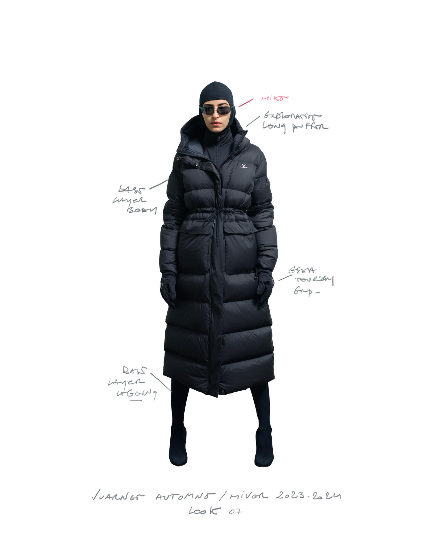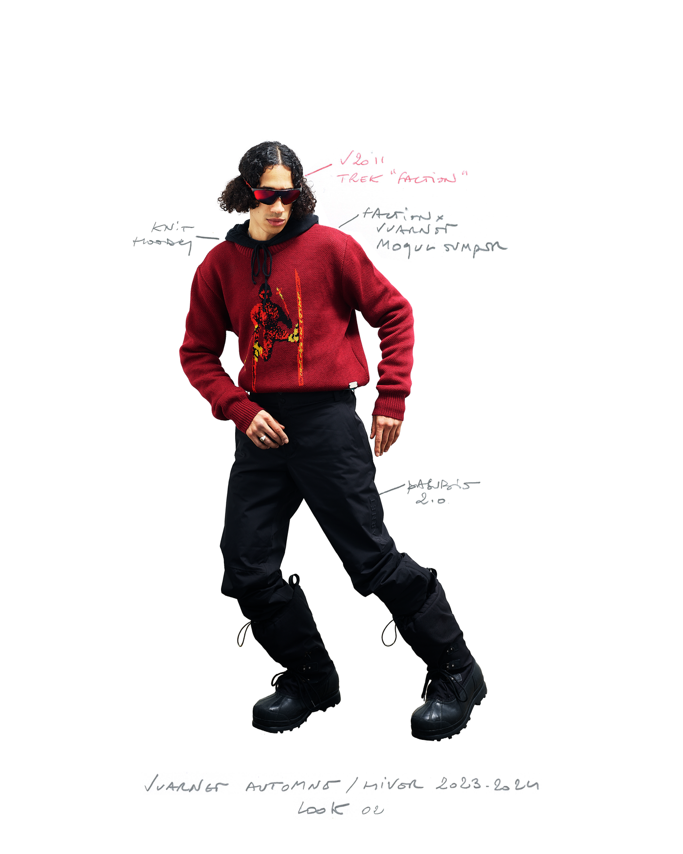"Pour la saison Automne Hiver 2023, j'ai voulu rendre hommage à ce que représentait Jean Vuarnet à travers une dualité, en mélangeant des silhouettes et des vêtements techniques, avec des tricots et des vêtements alpins artisanaux et fabriqués en France", explique Boramy Viguier. Le lookbook lui-même illustre également une certaine dualité, avec deux images contrastées par look : une photo analogique centrée sur le vêtement, sans environnement ni fantaisie, qui fait face à une interprétation générée par un IA de la même image dans un environnement "naturel".