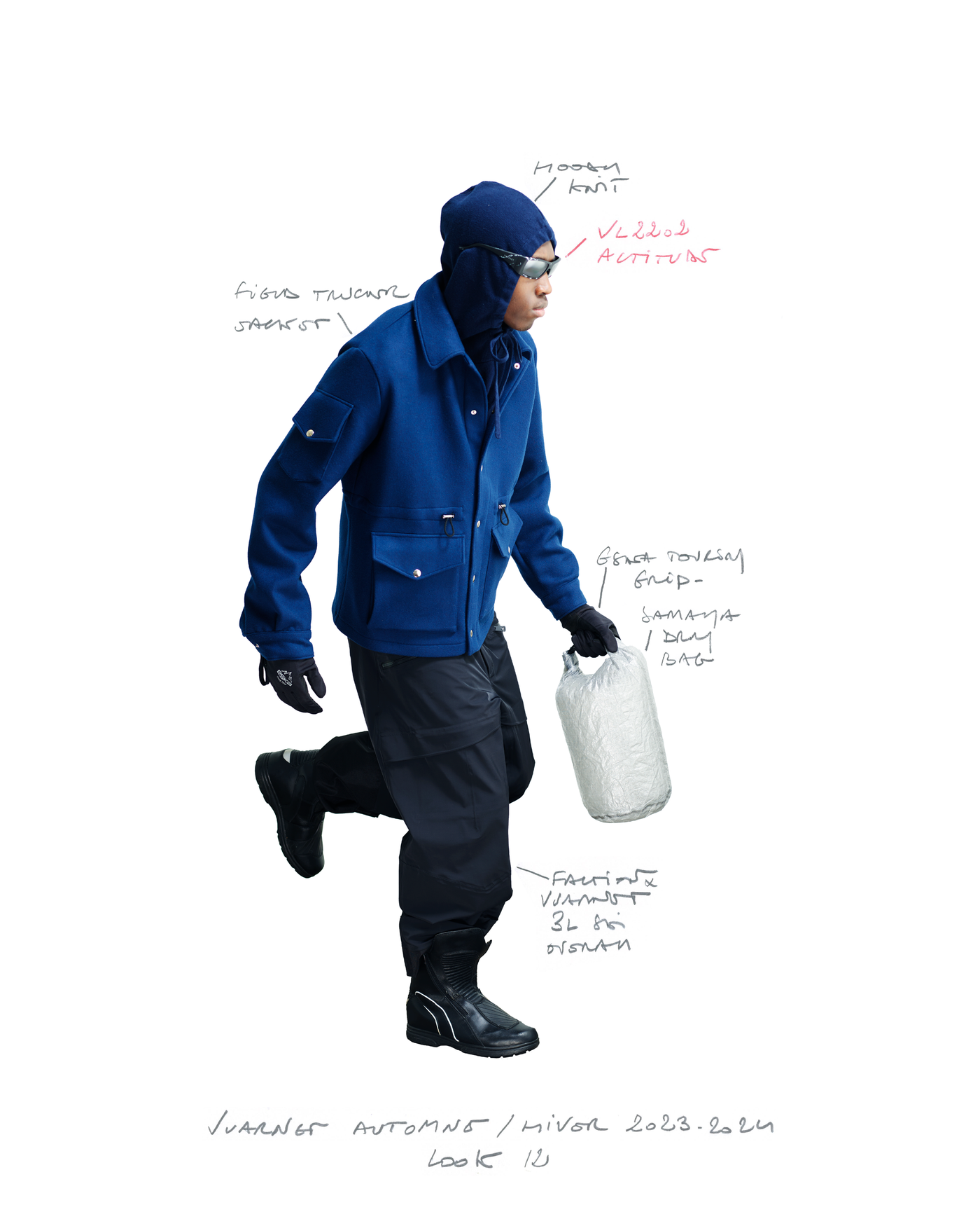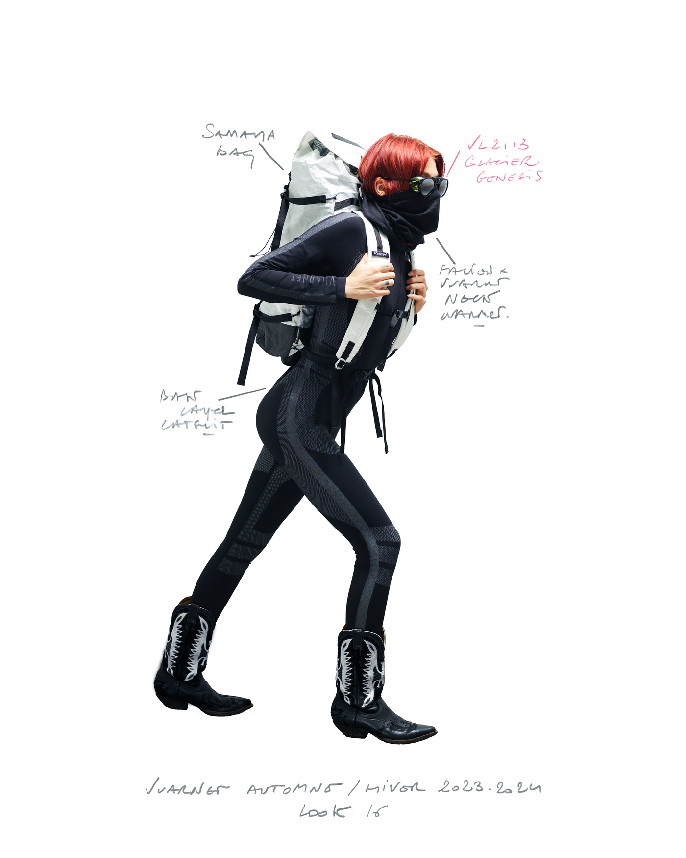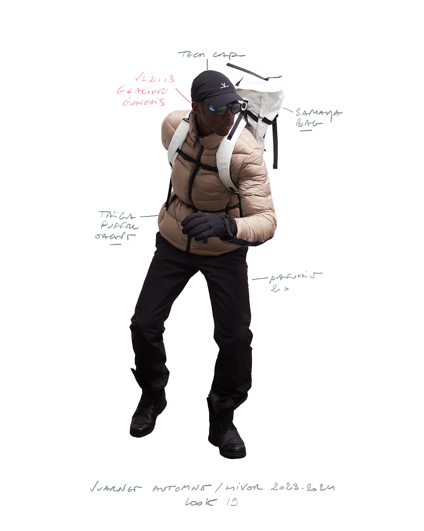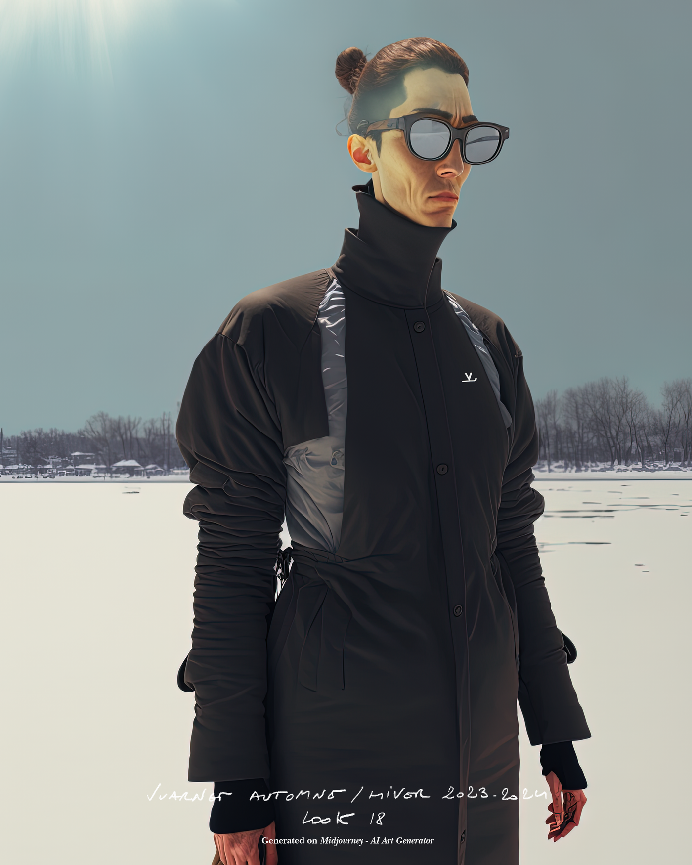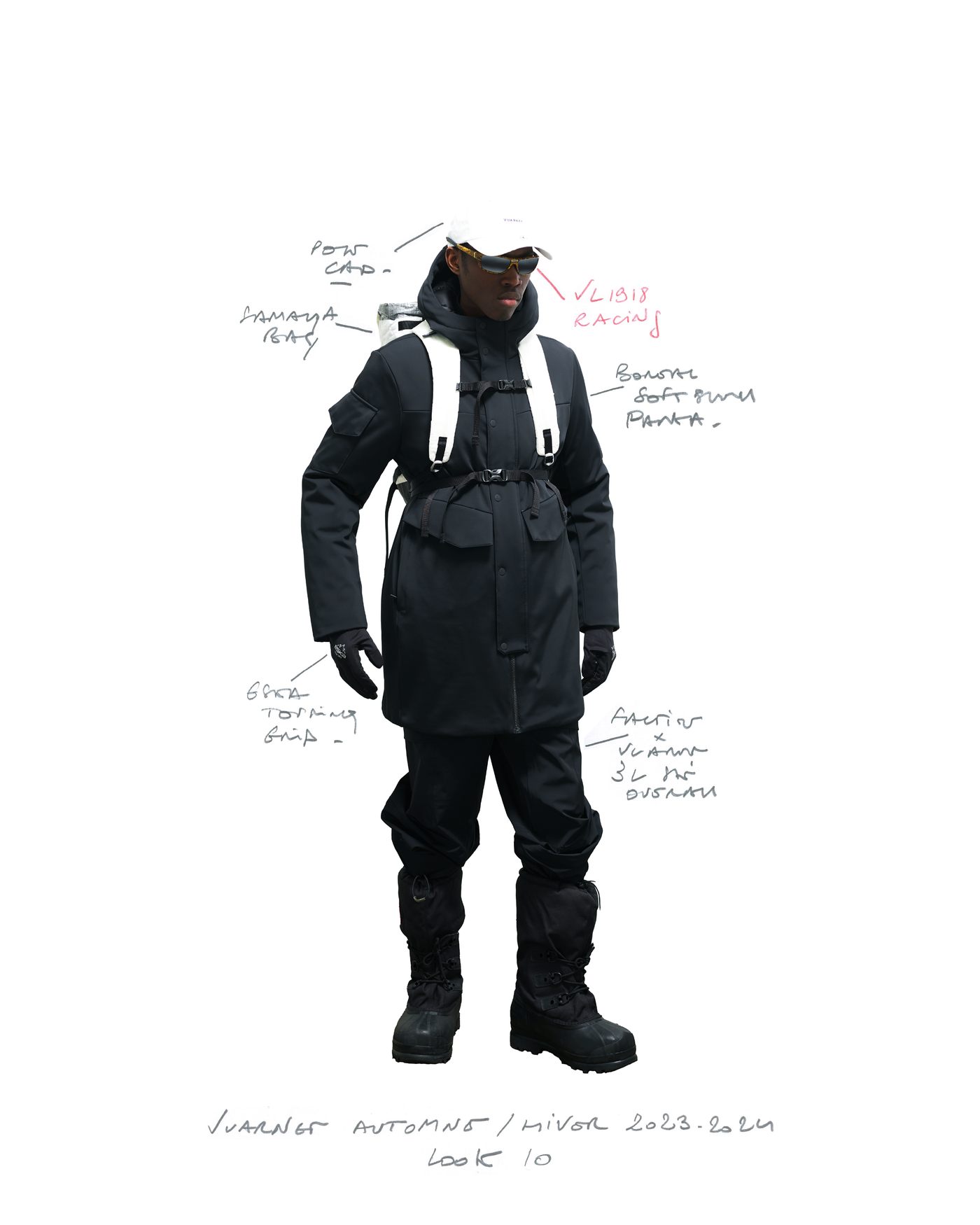 "Pour la saison Automne Hiver 2023, j'ai voulu rendre hommage à ce que représentait Jean Vuarnet à travers une dualité, en mélangeant des silhouettes et des vêtements techniques, avec des tricots et des vêtements alpins artisanaux et fabriqués en France", explique Boramy Viguier. Le lookbook lui-même illustre également une certaine dualité, avec deux images contrastées par look : une photo analogique centrée sur le vêtement, sans environnement ni fantaisie, qui fait face à une interprétation générée par un IA de la même image dans un environnement "naturel".