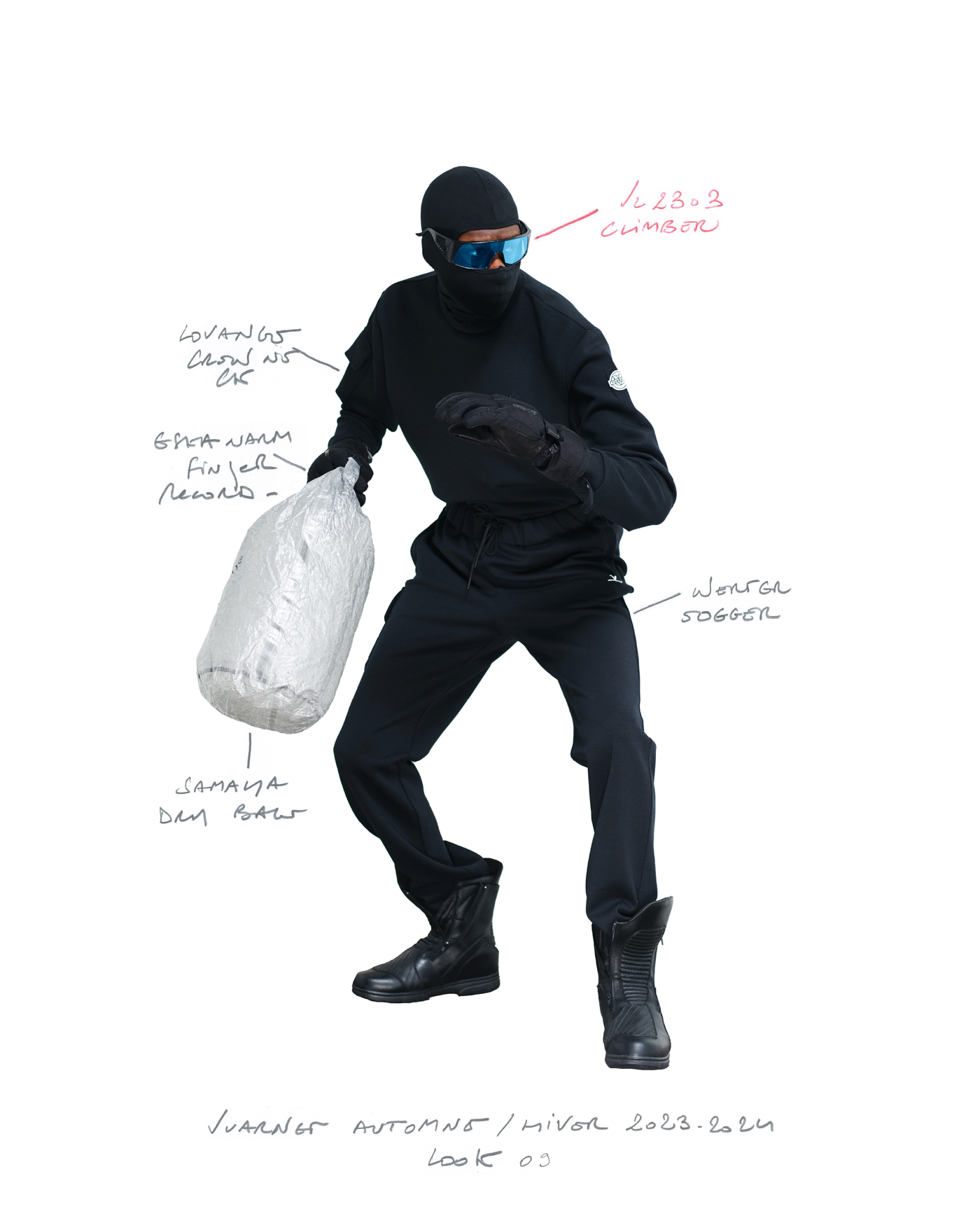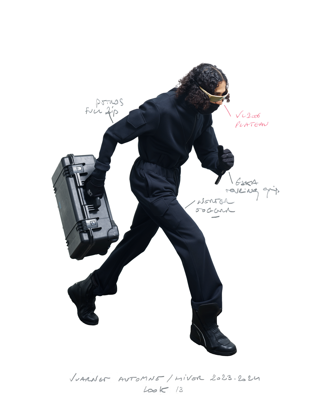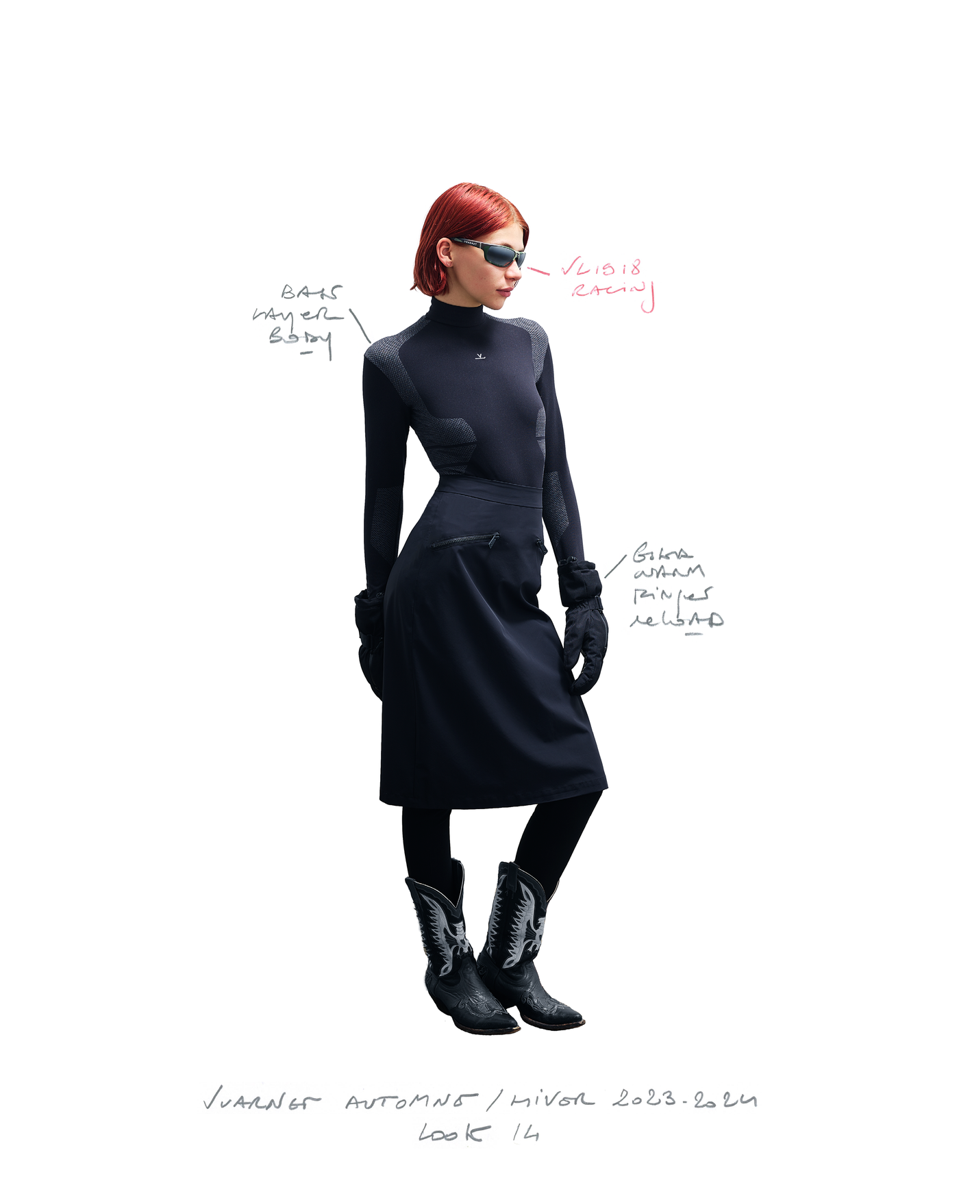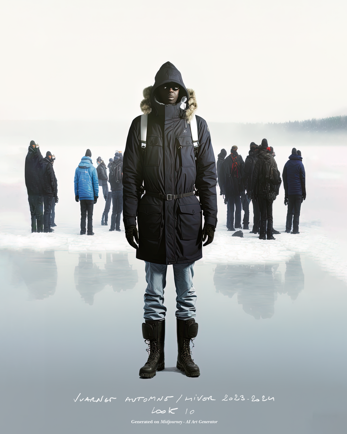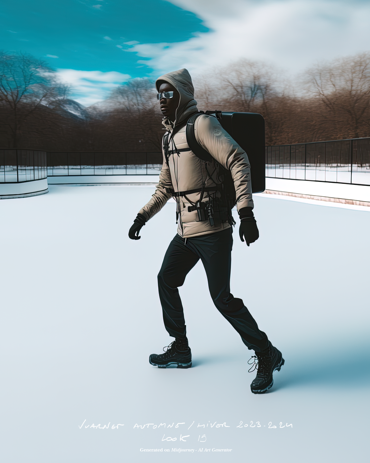 "Pour la saison Automne Hiver 2023, j'ai voulu rendre hommage à ce que représentait Jean Vuarnet à travers une dualité, en mélangeant des silhouettes et des vêtements techniques, avec des tricots et des vêtements alpins artisanaux et fabriqués en France", explique Boramy Viguier. Le lookbook lui-même illustre également une certaine dualité, avec deux images contrastées par look : une photo analogique centrée sur le vêtement, sans environnement ni fantaisie, qui fait face à une interprétation générée par un IA de la même image dans un environnement "naturel".